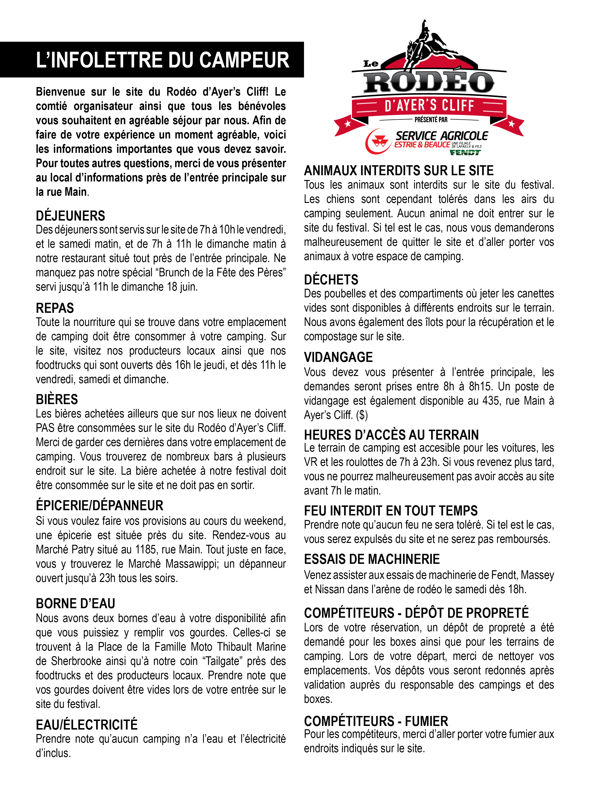 Camping 2 nuits (vendredi et samedi) sans services Camping 3 nuits (jeudi, vendredi et samedi) sans services